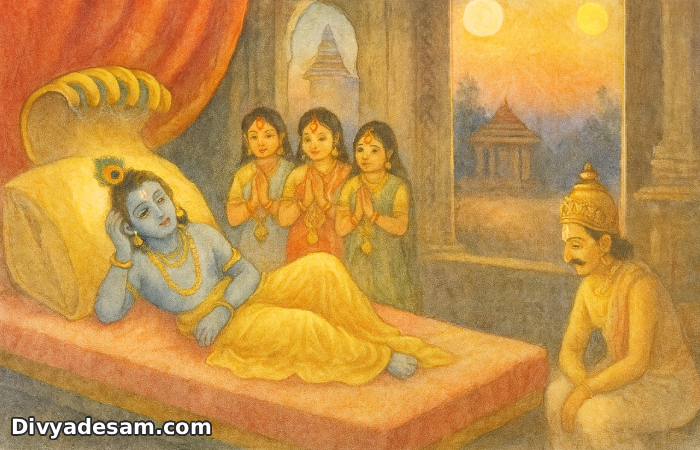 In this Paasuram, Sri Andal says all of the Paavais are like the flower and Sri Krishnar as the Surya - Chandran. This Paavais are waiting for the light of Sri Krishnar to flow on them.